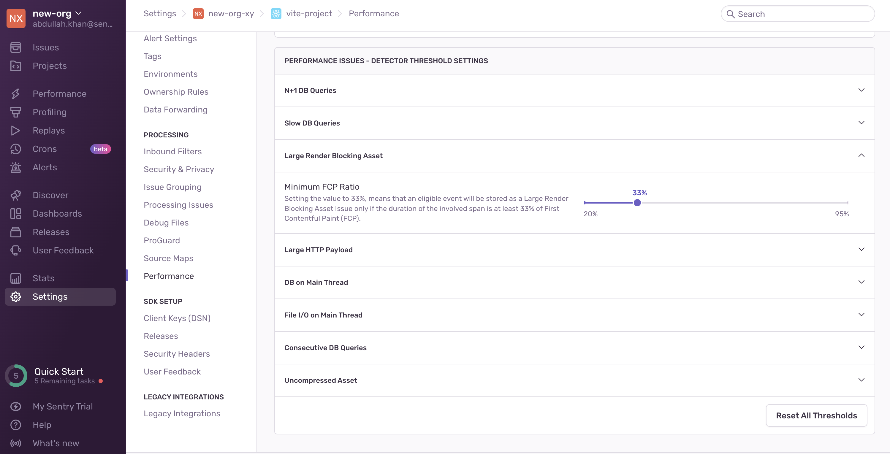 You can configure detector thresholds for Large Render Blocking Asset issues in Project Settings > Performance: